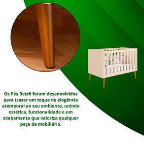 Os pés em madeira garantem estabilidade e firmeza ao móvel, enquanto as grades fixas proporcionam segurança e tranquilidade no dia a dia.