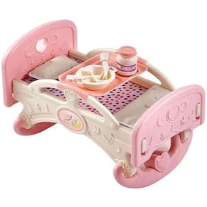 Detalhes do Produto: Cama de balanço para bonecas Inclui bandeja de servir Acessórios: pires, talheres e pote Material seguro e resistente Indicado para crianças acima de 3 anos
