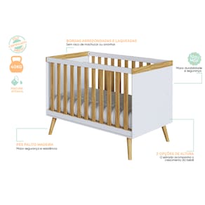 O Berço Peroba Sky Americano com suporte Mosquiteiro, com 2 Alturas da Base do colchão, Cor Branco com amendoa, 2 em 1: vira minicama referência 757987 ideal para mães que buscam segurança do seu bebê para um sono de qualidade e revigorante independente do momento do dia/noite protegendo seu bebê de doenças causadas por mosquitos ou até mesmo incomodo vindos de insetos indesejados. Com a altura ajustável, temos também o conforto para sua coluna durante as atividades do dia a dia, facilitando o manejo do seu bebê e a troca de enxovais. Sem esquecer da proteção, o berço tem grandes fixas e ventiláveis de ambos os lados para garantir que nos piores pesadelos, seu bebê jamais caia do berço.
