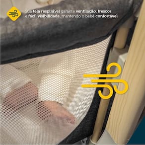 Características: Indicado para bebês desde os primeiros dias até 9 kg. Função de Inclinação Ajustável: Garante uma posição segura e confortável. Altura Ajustável: Se adapta à maioria das camas, facilitando o acesso durante a noite. Tela Respirável: Promove excelente ventilação e visibilidade. Mosquiteiro: Proteção extra contra insetos. Rodinhas: Facilidade de movimentação e posicionamento. Estrutura Leve: Facilita o transporte e uso diário.
