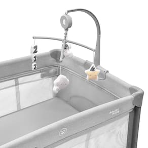 A experiência de uso é completa: o conjunto DayDream acompanha móbile com brinquedos e caixa de música não elétrica, ajudando a criar um ritual de sono calmo e agradável. Seu colchão macio possui revestimento delicado, tornando o descanso muito mais confortável. Um produto feito para acompanhar momentos de cuidado, conexão e descanso com o seu bebê.