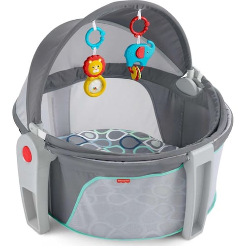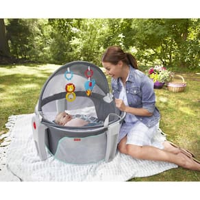 Berço portátil Fisher-Price On-The-Go Baby Dome, espaço para viagens e recreação com brinquedos e dossel para recém-nascidos, bolhas cinzentas