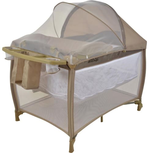 O Berço Dobrável New Aconchego Beige acaba servindo com cercadinho, o famoso chiqueirinho para bebe, já vem com tela mosquiteiro e possui fechamento compacto, ideal para passeios e viagens em família!