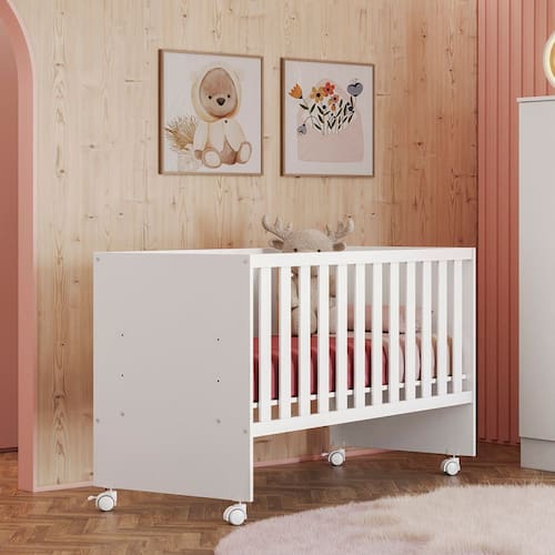 O Berço Doce Sonho Reto foi feito para proporcionar ao bebê mais segurança e aconchego durante o sono. Com um design minimalista, ele completa o ambiente com estilo e modernidade. Acompanha suporte para mosquiteiro, que permite noites mais tranquilas. MODELO: Doce Sonhos Berço padrão: nacional: -60cm-; Estrado em: MDF com chapas de 6mm; Travessas do estrado em: MDF com chapas de 25mm; Grade em: MDF com pintura atóxica e livre de materiais pesados. Produto com três regulagens de altura do estrado: 1- 360 milímetros, 2- 488 milímetros, 3- 616 milímetros -altura do estrado em relação a borda superior da grade-. Possibilita que conforme o crescimento do bebê, mais profundo fica o berço; Altura do chão até a base -variação de acordo com o posicionamento do estrado-: 1- 540 milímetros, 2- 412 milímetros, 3- 284 milímetros; Altura: 95 cm Largura: 64 cm Profundidade: 132,4 cm Peso: 26,2 Kg Garantia: 3 meses Ean: 7898555512030 Ean: 7898555512030
