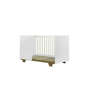 Particularidades do Berço Características Produto certificado pelo INMETROFeito em MDF de alta resistênciaDesign moderno e funcionalAcabamento com pintura UV 3 Níveis de Altura do Estrado
