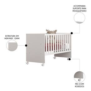 O Berço Reto com Rodízios Doce Sonho Branco, da Qmovi é uma ótima escolha para pais que buscam um móvel que combine funcionalidade e estilo.