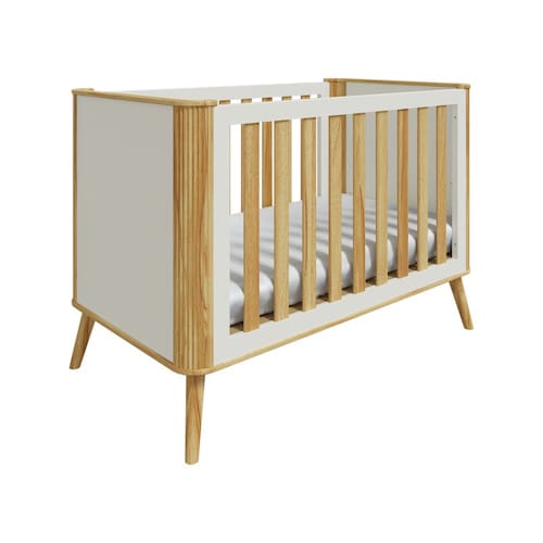 Fabricado em MDF , pés palito em madeira, cantos curvados, bordas laqueadas, pintura atóxica , base do colchão com 3 regulagens de altura;