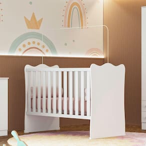 Características Estrutura em MDP Acabamento em pintura UV Atóxica Grades de proteção fixas feitas em MDF Estrado em MDF com 3 opções de altura Acompanha suporte para mosquiteiro Acabamento das bordas em perfil PVC Colchão não está Incluso - Ideal para colchão de 130 x 60 cm Suporta até 40 kg.