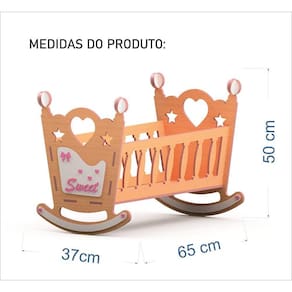 Característias gerais: - dimensões aproximadas: 37 x 65 x 50 cm largura x comprimento x altura ; - cores: mdf natural, branco e rosa;- idade recomendada: a partir de 5 anos; - produto fabricado através de tecnologia de corte a laser, garantindo precisão nos encaixes; - necessário colar algumas partes; - produto enviado desmontado. - garantia: 90 dias Obs: utilizar somente bonecas, não é utilizavel com animais ou humanos. Boneca e acessórios meramente ilustrativa, não acompanham o produto.