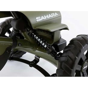O BERG Buzzy Jeep Sahara é um quadriciclo para pedalar, desenvolvido pela BERG Toys, maior fabricante de Pedal Go Karts do mundo. Licenciado pela Jeep, ele possui regulagem do assento e do volante, rodas maciças, em EVA que nunca furam e com estilo offroad. Produzido em aço carbono. Cor: Verde e preto. Barra de torção e muita ergonomia, isto é, além de design, muito conforto. Suporta até 30Kg, perfeito para crianças entre 02 e 05 anos de idade. Pedala para frente e para trás. Será, sem dúvidas, o melhor presente que uma criança poderá ganhar nos dias de hoje, pois estimular atividades dinâmicas e ao ar livre, é essencial. Toda criança merece um BERG Dimensões: Comprimento: 83 cm Largura: 49 cm Altura: 50 cm Peso: 9 Kg Garantia: 1 ano.
