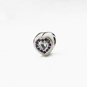 Berloque coração cravejado com Zirconias Vermelhas em prata 925
