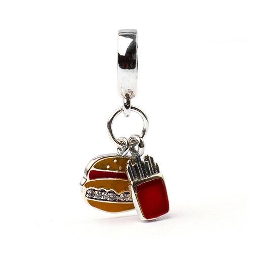 Quem não ama essa combinação de Hambúrguer e Batata Frita Em um mesmo berloque, dois amores O Berloque Pingente Hambúrguer e Batatas Fritas é composto por dois pingentes em um mesmo separador. Um deles, uma deliciosa batata frita com a clássica embalagem vermelha. Já o outro, um hambúrguer com um recheio de apliques de Zircônias. O passador liso, evidencia ainda mais os incríveis detalhes esse berloque é perfeito para quem ama fast food. Por ele ser estilo pingente é ideal para ficar entre dois separadores. Fica lindo quando combinado com os outros itens da Coleção Gourmet e até mesmo com muranos. O Berloque Pingente Hambúrguer e Batatas Fritas é fabricado em Prata 925 por isso a peça não descasca. O acabamento e polimento são feitos manual e individualmente, revelando todo o cuidado que temos com cada detalhe. Assim, não se engane com materiais folheados e banhados. Esse berloque é compatível com todos as pulseiras do mercado. No entanto, caso ainda tenha dúvidas, basta medir a espessura da sua pulseira. O passador desta peça tem 4,5mm de diâmetro. Material: Prata 925, Zircônia e esmalte. Cor: Prata, vermelho e amarelo. Medidas aproximadas: 25 mm de altura x 11 mm de largura. Passador com 4,5mm de diâmetro. Compatível com todas as marcas tradicionais de pulseiras de berloques. Marca: Mundo Briller Ean: 5293551942867