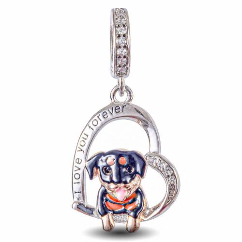 O Berloque Charm Rottweiler em Prata 925 é compatível com todas as marcas tradicionais de pulseiras de berloques.