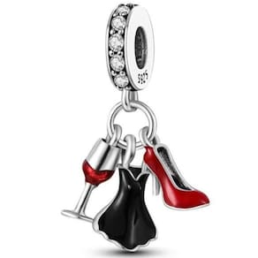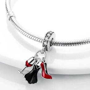 "Um toque de glamour em cada detalhe! O Berloque em Prata 925 com Vestido Preto, Salto Alto e Taça de Vinho é a expressão da elegância atemporal. Para as noites de celebração, onde o charme se encontra com a sofisticação."