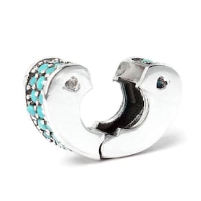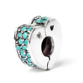 Este berloque tipo clipe é uma ótima opção para você travar seus berloques evitando assim que caiam quando você abre sua pulseira, ele tem o formato de um coração, é muito delicado, fabricado em Prata 925. Não se engane com materiais folheados e banhados. Acabamento e polimento manuais. Material: Prata 925. Cor: Prata e Azul. Medidas aproximadas: 10x10mm. Para que o clip não se mexa, verifique a espessura da sua pulseira. Essa peça tem 4,5mm de vão. Marca: Mundo Briller Ean: 7899057812741