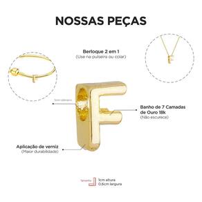 MODELO: Berloque de Letra F banhado com 7 milésimos de ouro 18k.
