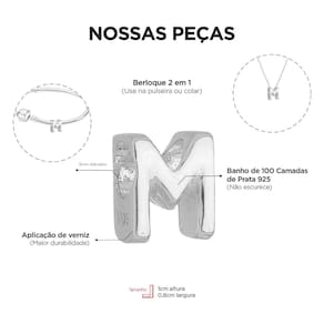 MODELO: Berloque de Letra M banhado com 100 milésimos de prata 925.