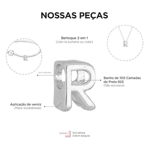MODELO: Berloque de Letra R banhado com 100 milésimos de prata 925 .