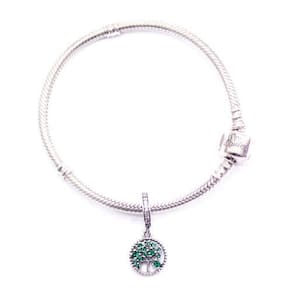 Berloque estilo pendente Árvore da Vida é uma delicadeza. Com a árvore vazada no centro e o passador cheio de brilho ela ficará um araso na sua coleção. Fabricado em Prata 925 e Zircônias. Não se engane com materiais folheados e banhados. Acabamento e polimento manuais. Material: Prata 925 e Zircônias. Cor: Prata e verde. Medidas aproximadas: 23mm de altura x 10mm de largura. Passador com diâmetro de 4,5mm. Compatível com todas as pulseiras. Marca: Mundo Briller Ean: 7899057813311