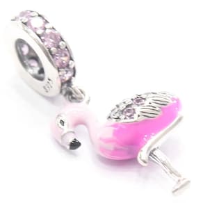A tendência que não pode faltar na sua pulseira O Berloque Pingente Flamingo é perfeito para representar o clima tropical e o verão, além de ser tendência da estação. O flamingo é esmaltado em dois tons de rosa: um rosa claro que vai do bico até o final do pescoço, e um escuro, que cobre toda parte de baixo da ave. Os tons de rosa, típicos do flamingo, trazem um ar romântico e alegre para a peça. Além disso, a plumagem da asa do flamingo é colorida por pedrinhas de zircônia rosa claro e cristal. Os detalhes, como no bico, olhos e penas, trazem todo um encanto para o berloque. As pernas prateadas em diferentes posições, uma dobrada e a outra esticada, traz toda a graciosidade para a peça. E para deixar esse berloque ainda mais elegante, seu passador prateado é todo cravejado com pedrinhas de zircônia rosa claro. O berloque é igual de ambos os lados. Ouse nas combinações e deixe sua pulseira incrível com esse berloque Por ele ser estilo pingente fica lindo entre dois separadores.. O acabamento e polimento são feitos de forma manual e individual, revelando todo o cuidado que temos com cada detalhe. Portanto, não se engane com materiais folheados e banhados. Esse berloque é compatível com todas as pulseiras do mercado. No entanto, caso ainda tenha dúvidas, basta medir a espessura da sua pulseira. O passador desta peça tem 4,5mm de diâmetro. Material: Prata 925, Zircônias e esmalte. Cor: Prata, rosa, rosa claro e preto. Medidas: 26mm de altura x 13mm de largura. Passador com 4,5mm de diâmetro. Compatível com todas as marcas tradicionais de pulseiras de berloques. Marca: Mundo Briller