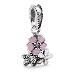Esse berloque estilo pingente com um trio de flores é ideal para ficar entre dois separadores. As suas cores são muito fáceis de combinar. Essa escolha é perfeita para completar a sua coleção. Não se engane com materiais folheados e banhados. Acabamento e polimento manuais. Material: Prata 925 e Zircônia.