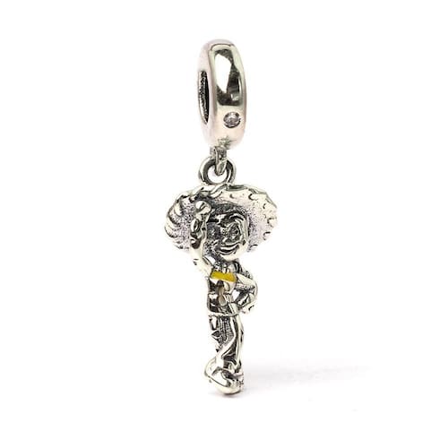 A vaqueira Jessie com suas calças de couro e seu grande chapéu de cowboy chegou para fazer parte da sua coleção personagens. Um toque de esmalte amarelo completa sua roupa e o cabelo amarrado com trança completam o seu designer. Um ponto de luz decora o passador. Berloque estilo pendente fabricado em prata 925, com detalhes esmaltados e em Zircônia. Não se engane com produtos folheados.Acabamento e polimento manuais. Material: Prata 925, Zircônia e esmalte. Cor: Prata e amarelo. Medidas aproximadas: 29mm de altura x 9mm de largura. Passador com 4,5mm de diâmetro. Compatível com todas as pulseiras. Marca: Mundo Briller Ean: 7899057813953