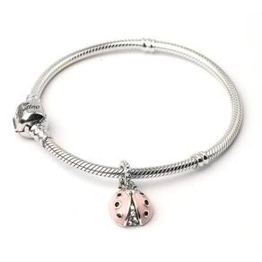 Mais uma fofura do jardim para a sua coleção. Os cristais pretos brilham nas asinhas rosa da Joaninha. Zircônias transparentes completam o corpinho dela. Detalhes em alto relevo completam o passador. Berloque estilo pendente em formato de Joaninha fabricado em Prata 925 e detalhes esmaltados.Não se engane com materiais folheados e banhados. Acabamento e polimento manuais. Material: Prata 925 e esmalte. Cor: Prata, rosa e preto. Medidas aproximadas: 21mm de altura x 11mm de largura. Compatível com todas as pulseiras. Marca: Não Informado