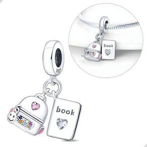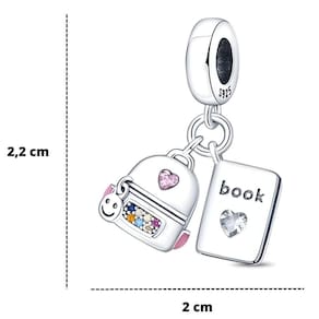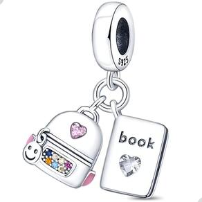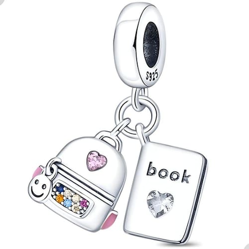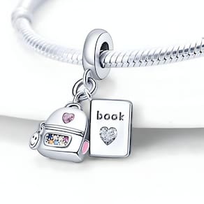 "Jornada de conhecimento, aventuras sem limites. Berloque mochila com livro em prata 925 - explorando páginas e lugares."