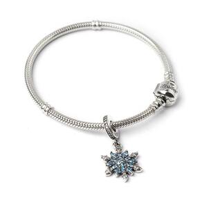 O inverno chegando na sua coleção Um berloque inspirado em um floco de neve é a peça perfeita para esfriar a sua coleção. O brilho da Zircônia e o design com cortes simétricos trazem o charme deslumbrante quando combinado com a base de prata. Além de relembrar uma temporada de férias no frio, também é perfeito para simbolizar a exclusividade e raridade, afinal, nenhum floco de neve é igual ao outro. Sem dúvida, ele vai chamar a atenção na sua coleção.. O Berloque Pingente Neve Frozen é fabricado em Prata 925 por isso a peça não descasca. O acabamento e polimento são feitos manual e individualmente, revelando todo o cuidado que temos com cada detalhe. Assim, não se engane com materiais folheados e banhados. Esse berloque é compatível com todos as pulseiras do mercado. No entanto, caso ainda tenha dúvidas, basta medir a espessura da sua pulseira. O passador desta peça tem 4,5mm de diâmetro. Material: Prata 925 e Zircônia. Cor: Prata e azul. Medidas aproximadas: 29mm de altura x 11mm de largura. Passador com 4,5mm de diâmetro. Compatível com todas as marcas tradicionais de pulseiras de berloques. Marca: Mundo Briller Ean: 7805875490672