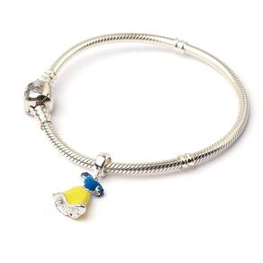Ela é doce e encantadora. Berloque estilo pendente no formato do vestido da Branca de Neve, fabricado em Prata 925 com acabamento esmaltado. Não se engane com materiais folheados e banhados. Acabamento e polimento manuais. Material: Prata 925 e esmalte. Cor: Prata, azul, vermelho e amarelo. Medidas aproximadas: 21mm de altura x 8mm de largura. Compatível com todas as pulseiras. Marca: Mundo Briller