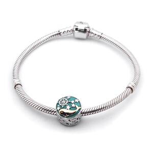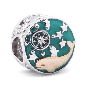 Berloque tipo separador com a figura de uma baleia fabricado em Prata 925 com detalhes esmaltados. Não se engane com materiais folheados e banhados. Acabamento e polimento manuais. Material: Prata 925 e esmalte. Cor: Prata e dourado. Medidas aproximadas: 10mm de diâmetro. Compatível com todas as pulseiras. Marca: Mundo Briller Ean: 7805876002034