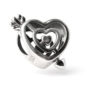 O cupido te pegou. Berloque em formato de coração com uma flecha fabricado em Prata 925. A peça é vazada dando mais leveza aos designer. Represente a sua paixão na sua coleção, ideal para ficar entre dois pendentes. Não se engane com materiais folheados e banhados. Acabamento e polimento manuais. Material: Prata 925. Cor: Prata. Medidas aproximadas: 11mm de altura x 11mm de largura. Compatível com todas as pulseiras. Marca: Mundo Briller Ean: 7899057812338
