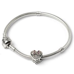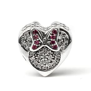 Berloque estilo separador em formato de coração fabricado em Prata 925 e cravejado em Zircônias refernciando a ratinha mais famosa do mundo. . Não se engane com materiais folheados e banhados. Acabamento e polimento manuais. Material: prata 925 e Zircônias. Cor: prata, branco e rosa. Medida aproximada: 9 mm de altura x 10mm de largura. 4,5m diâmetro do passador. Compatível com todas as pulseiras. Marca: Não Informado
