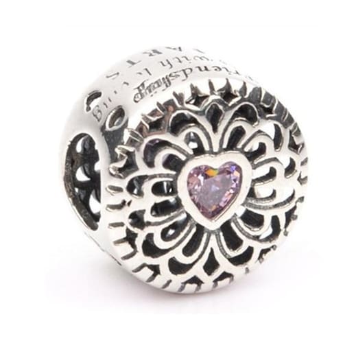 Demonstre o seu amor por aquela pessoa especial com este berloque estilo separador em formato de coração com Zircônia. Não se engane com materiais folheados e banhados. Acabamento e polimento manuais. Material: Prata 925 e Zircônia. Cor: Prata e Rosa. Medidas aproximadas: 10mm de diâmetro. Compatível com todas as pulseiras. Marca: Mundo Briller Ean: 7805875991681