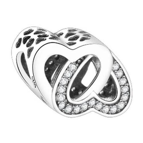 O amor está nos pequenos detalhes Esses corações entrelaçados deixará a sua coleção ainda mais romântica. As laterias com corações vazados deixou a peça ainda mais delicada e os brilhos da Zircônia enriquecem a composição. Berloque em formato de dois corações entrelaçados em Prata 925 e Zircônia. Não se engane com materiais folheados e banhados. Acabamento e polimento manuais. Material: Prata 925 e Zircônia. Cor: Prata. Medidas aproximadas: 11mm x 9mm. Passador com 4,5mm de diâmentro. Compatível com todas as pulseiras. Marca: Mundo Briller Ean: 7899057813786