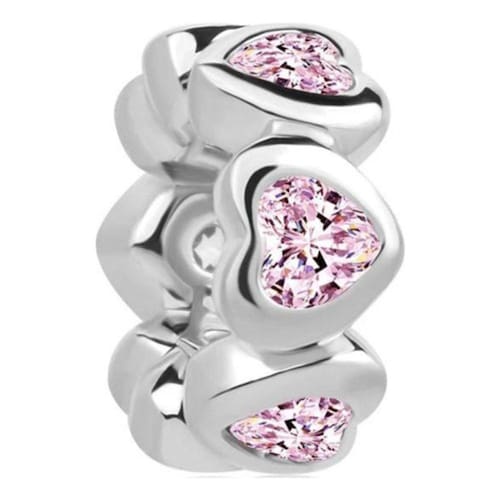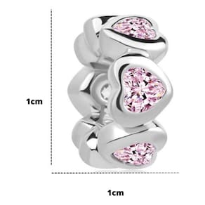 "Uma conexão que transcende o tempo e o espaço, adornada com corações reluzentes de zircônia rosa."