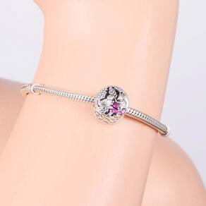 Berloque fabricado em Prata 925 e pedras de Zircônia com desenhos vazados. Não se engane com produtos folheados. Acabamento e polimento manuais. Material: Prata 925 e Zircônia. Cor: Prata e Rosa. Medida aproximada: 10mm de diâmetro. Compatível com todas as pulseiras. Marca: Mundo Briller Ean: 7899057812222