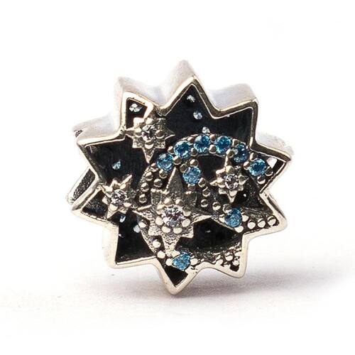 Quando você ver aquela estrela bem brilhante la no céu, não perca a oportunidade e faça aquele pedido especial Esse berloque com detalhes vazados representa aquele brilho no céu que nos enche de esperança e fé. A parte de trás não é vazada porém tem um incrível contorno de brilhos azuis. Berloque em formato de estrela fabricado em Prata 925 e Zircônias. Não se engane com materiais folhados e banhados. acabamento e polimento manuais. Material: Prata 925 e Zircônias. Cor: Prata e azul. Medidas aproximadas: 12mm de altura x 11mm de largura Compatível com todas s pulseiras. Marca: Mundo Briller Ean: 7893651940213