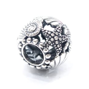 Represente o seu amor pelo mar com esse berloque encantador O Berloque Separador Fundo do Mar Vazado é a combinação perfeita entre detalhes vazados e desenhos com diferentes relevos. A composição entre conchas, vieiras, búzios e a estrela do mar formam uma composição perfeita de fundo do mar. Um coração oculto é formado nessa combinação. O detalhe de contas em alto relevo ao lado do passador enriquece todo design. Um berloque cheio de profundidade pensado para quem tem uma personalidade delicada. Por ele ser estilo separador, é ideal para ficar entre dois pingentes. Destacando todas as peças da sua coleção. Imagina ele combinado com outros berloques com tema fundo do mar O Berloque Separador Fundo do Mar Vazado é fabricado em Prata 925, por isso a peça não descasca. O acabamento e polimento são feitos manual e individualmente, revelando todo o cuidado que temos com cada detalhe. Assim, não se engane com materiais folheados e banhados. Esse berloque é compatível com todos as pulseiras do mercado. No entanto, caso ainda tenha dúvidas, basta medir a espessura da sua pulseira. O passador desta peça tem vão de 4,5mm de diâmetro. Material: Prata 925. Cor: Prata. Medidas aproximadas: 10mm de diâmentro. Passador com vão de 4,5mm de diâmetro. Compatível com todas as marcas tradicionais de pulseiras de berloques. Marca: Mundo Briller Ean: 7805876041705