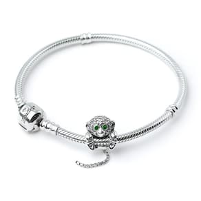 Represente o seu lado divertido com esse macaquinho com a cauda pendurada. O passador da pulseira é formado , porque ele segura os próprios pés Ele é cheio de detalhes encantadores, como os seus olhos brilhantes em Zircônia verdes e os corações em baixo relevo na parte inferior dos pés. Sua cauda de cobra comprida balança, assim como ele gira em torno da pulseira. A cabecinha dele é toda decorada com Zircônias e se espalham pelas costas. Uma combinação incrível de detalhes bem trabalhados Não se engane com materiais folheados e banhados. Acabamento e polimento manuais. Material: Prata 925 e Zircônia. Cor: Prata e verde. Medidas aproximadas: 30mm de altura x 11mm de largura. Compatível com todas as pulseiras. Marca: Mundo Briller Ean: 7899057813281