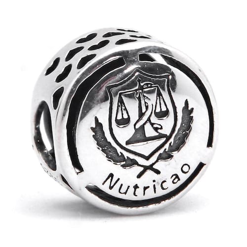 Ideal para você que cursou Nutrição ou sonha em cursar um dia. Esse berloque estilo separador com o brasão da profissão não pode faltar na sua coleção.Ele é fabricado em Prata 925 e detalhes em alto relevo. Não se engane com materiais folheados e banhados. Acabamento e polimento manuais. Material: Prata 925. Cor: Prata. Medidas aproximadas: 10mm de diâmetro Compatível com todas as pulseiras. Marca: Mundo Briller Ean: 7805875690416