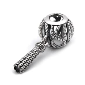 Esse berloque em formato de tassel é lindo Detalhes vazados e em alto relevo dão elegância a peça. Ele será aquele tipo de detalhe que fará toda a diferença na sua coleção. Ficará lindo quando combinado com separadores.Fabricado com Prata 925. Não se engane com materiais folheados e banhados. Acabamento e polimento manuais. Material: Prata 925. Cor: Prata. Medidas aproximadas: 27mm de altura x 10mm de largura. Compatível com todas as pulseiras. Marca: Mundo Briller Ean: 7899057812123