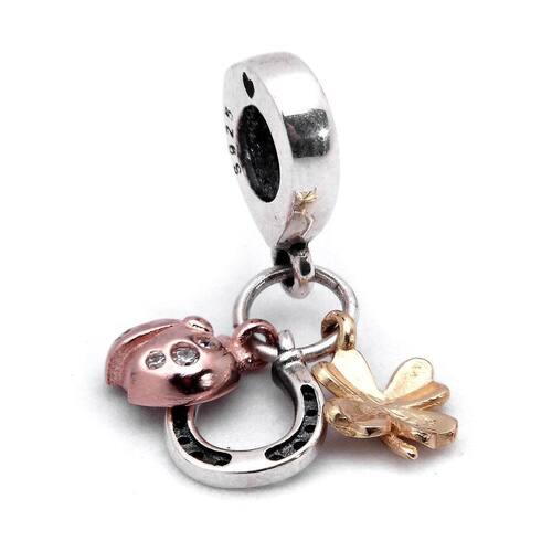 Um berloque para triplicar a sua sorte O Berloque Trio de Sorte é perfeito para aqueles que querem atrair a sorte. Formado por três pingentes, esse berloque é a união impecável de propriedades mágicas e beleza O pingente rosê com o formato de joaninha, remete a vários sentidos e significados, entre eles o bom presságio, a felicidade e que a sorte está por vir. E para deixá-lo ainda mais brilhante, pedrinhas de Zircônias adornam as costas da joaninha representando suas pintinhas. A ferradura prateada também representa a sorte, além de significar proteção e energia positiva. E o clássico trevo de quatro folhas, que tem cada uma de suas folhas representando algo específico: a esperança, fé, amor e seu principal significado, a sorte. Esse amuleto fica ainda mais majestoso em seu tom dourado. Deixa sua pulseira ainda mais divina com esse berloque Por ele ser estilo pingente fica lindo entre dois separadores.. O acabamento e polimento são feitos de forma manual e individual, revelando todo o cuidado que temos com cada detalhe. Portanto, não se engane com materiais folheados e banhados em Prata. Esse berloque é compatível com todas as pulseiras do mercado. No entanto, caso ainda tenha dúvidas, basta medir a espessura da sua pulseira. O vão do passador desta peça tem 4,5mm de diâmetro. Material: Prata 925 e Zircônia. Cor: Prata, rosê e dourado. Medidas aproximadas: 24mm de altura x 13mm de largura. Passador com vão de 4,5mm de diâmetro. Compatível com todas as marcas tradicionais de pulseiras de berloques. Marca: Mundo Briller Ean: 7805876071870