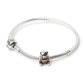 Apresentamos o Berloque Separador Urso Laço Rosa, um charmoso e delicado pingente para pulseiras. Fabricado em Prata 925, esse berloque possui um design encantador, em formato de uma ursinha com um laço rosa no pescoço. Seus detalhes esmaltados proporcionam um toque especial e diferenciado.