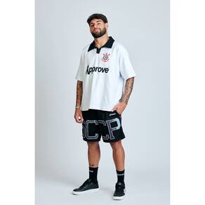 DESIGN Apresenta estampas aplicadas em técnica de transfer e silkscreen, com etiqueta lateral e TAGs personalizadas da Collab Approve x Corinthians, reforçando o estilo exclusivo e o orgulho de vestir o manto alvinegro fora dos gramados.