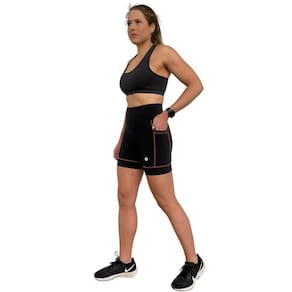 CaracterísticasBermuda de corrida preta com cintura anatômica