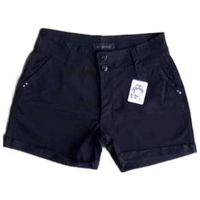 Bermuda meia coxa feminina com elastano, 2 bolsos dianteiros estilo FACA, 2 bolsos traseiros. Barra da bermuda com dobra estilo Italiana. Cintura alta. Cós Largo. Corte / Caimento LEVANTA BUMBUM. Fechamento /abertura por 2 botões e zíper frontal. Botão em metal com acabamento preto. Peça muito confortável e linda. Composição: 85% algodão, 12% poliéster, 3% elastano. **As medidas descritas no Guia de Tamanhos são as medidas da bermuda.** Compare estas medidas com alguma bermuda que você tenha e goste do caimento. Caso comparar com as medidas do seu corpo, escolha uma opção de tamanho que seja um pouco maior que as suas medidas, para que a bermuda não fique apertada. Medidas da Peça: Tam 50 LARGURA DO CÓS: 82 CM ALTURA DO GANCHO: 29 CM QUADRIL: 122 CM COMPRIMENTO DA PERNA DA BERMUDA: 12 CM LARGURA DA PERNA (COXA): 68 CM LARGURA DA BARRA DA BERMUDA: 67 CM COMPRIMENTO TOTAL DA BERMUDA: 44 CM