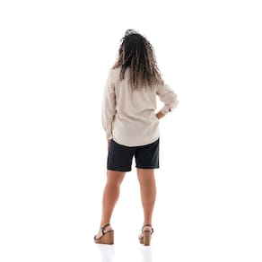 A Bermuda Jorts é a tendência queridinha do verão. Com comprimento acima dos joelho e soltinha no corpo, possui passantes, bolsos e fechamento por zíper e botão.