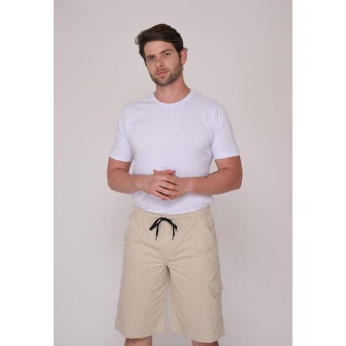 Bermuda cós elástico de sarja.