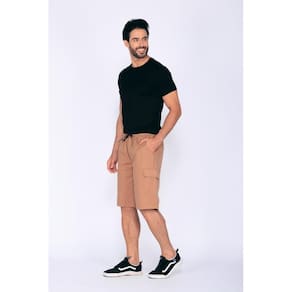 Bermuda cós elástico de sarja.